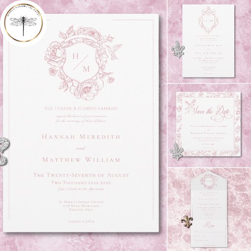 Elegant Pink Chinoiserie Bird & Crest WeddingCriado por Kathe Santillo