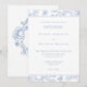 Elevem seu dia especial com o nosso elegante convite de casamento ao estilo Barroco, uma obra-prima de elegância eterno. Apresentando uma delicada borda de chinoiserie azul empoeirada francesa com delicadas flores de linhagem e um pássaro sobre um fundo branco pristino, essa design exude encanto clássico e sofisticação. Sua simplicidade destaca seus detalhes refinados, criando um design tão gracioso quanto sua história de amor. Perfeito para aqueles que apreciam tradição e elegância. Criado pela imprensa simplesmente de farmácia.