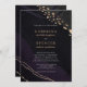 Este convite de casamento do Metallic Geode é perfeito para uma noiva moderna e única. O design apresenta elementos dourados sobre texturas roxas pretas e escuras. Um design único e moderno.