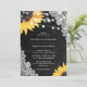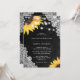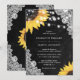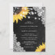 Este convite de casamento floral elegante e romântico com girassóis contra um quadro negro e fundo de renda é perfeito para convidar seus convidados para o seu casamento rústico no campo/ quintal/celeiro inspirado em girassóis.