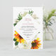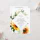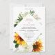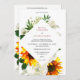 Prepare seus convidados para a diversão com este convite de casamento com girassóis e rosas brancas.