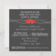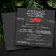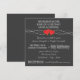 Modelo de convite de casamento rústico em preto e branco com quadro de giz. Estes convites de casamento de giz têm dois corações vermelhos entrelaçados e a proclamação "nós acreditamos no tipo de amor que dura toda a vida", bem como o tradicional "Santo Matrimônio". Este convite de casamento simples e tradicional em quadro de giz adiciona um toque de simplicidade antiquada!