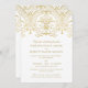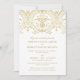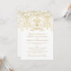 Os convites de casamento inspirados pela Elegant Vintage contêm um design decorativo de ornamentado de cor dourada champanhe que é impresso com aparência metálica de um shimmer. A impressão na opção Cartolina Luxe Pearl Shimmer melhora o aspecto metálico das cores da design dourada.