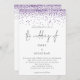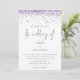 Escrito Elegante, Casamento de Silver Glitter Confetti. Uma tipografia na moda em preto para o título principal de Casamento de complementar o resto do texto que você pode facilmente personalizar. Uma borda brilhante de falso roxo passa pelo topo em ambos os lados.
