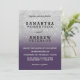 Um convite de casamento simples, original e moderno, brilhante, prateado, sobre um fundo de cor roxa totalmente personalizável. Perfeito para casamento chic, elegante