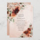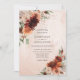 Este convite de casamento boho elegante apresenta terracota aquarela, laranja queimada, floral enferrujado e grama pampas. Personalize-o com seus detalhes de forma fácil e rápida, basta pressionar o botão personalizar para reorganizar e formatar ainda mais o estilo e a colocação do texto. (c) The Happy Cat Studio