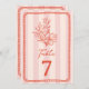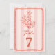 Ilustração botânica floral de arte em linha vermelha sobre fundo de faixa rosa com texto vermelho e quadro desenhado à mão.
