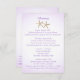 Convite de casamento de praia com cartão de informações com uma hortênsia roxa e concha de um lado e estrelas-do-mar do outro. Itinerário de um lado e acomodações do outro. Personalize o texto como preferir.
