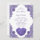 Complemente sua festa de casamento roxa com estes elegantes convites de casamento roxos rústicos, personalizados, com um coração de hydrangea em um fundo branco comum, enfeitado com rendas florais roxas. Personalize facilmente esses cartões de casamento roxos com seus detalhes de casamento. Para itens correspondentes, entre em contato conosco através do bate-papo Zazzle.
