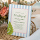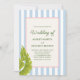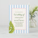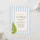 Celebre seu dia especial com um clima tropical retrô divertido! Este convite de casamento apresenta um fundo listrado azul suave, folhas de palmeira e uma moldura com corda e texto verde. Perfeito para casais que amam elegância caprichosa com um toque de charme da ilha.