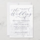 Imprima seus convidados com este convite elegante de casamento de Jessica Amber. Este cartão clássico apresenta um título de caligrafia romântico para "o casamento de". A inscrição azul escura legante mostra os nomes da noiva e do noivo e os detalhes do casamento, incluindo a localização, data e hora. O fundo tem uma ilustração vintage esmaecida de um castelo, que você pode substituir por uma imagem do destino onde você será casado (transparente ou predileta branca). Este convite é preferido para quando o casal estiver hospedando o evento. Procure na minha coleção o conjunto de convites correspondente. ⚠ Se você quiser editar a caligrafia e usar caracteres especiais, copie e cole-os desta página: bit.ly/Emeline-Script ⚠ ・ ・ Para mais suites de casamento, visite minha loja Zazzle.com/EventsByJessicaAmber ・ ・ ・ Para pedidos personalizados, envie-me uma mensagem no Zazzle