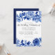 Convite Casamento de Influência da Ásia marinho Azul e Bra