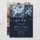 Um chic elegante e simples marinho azul indigo com ilustração floral de aquarela e iniciais de fotos de script casamento, adicione 4 de sua foto de casal favorita, convite de casamento chic, adicione suas iniciais no verso. Perfeito para casamentos casuais.
