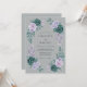 Uma paleta sofisticada de cinza pomba, azul profundo e lavanda suave cria uma atmosfera sombria, porém elegante. Este design apresenta rosas em aquarela exuberantes e delicados cachos de hortênsias dispostos em um spray botânico ornamentado. Os tons frios e folhagens invernais evocam um senso de romance refinado perfeito para um evento sazonal.
