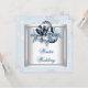 Convite de casamento de inverno azul branco com floco de neve azul.