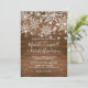 Crie um fator surpresa com esses convites de casamento modernos de tema de inverno, apresentando um fundo de madeira rústica, flocos de neve de Natal, luzes cintilantes e um modelo de casamento editável elegante. Perfeito para um casamento de inverno em celeiro, fazenda, pub ou vinhedo!