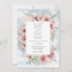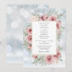 Um convite de casamento de inverno moderno e elegante com flores de rosa bonitas e tipografia elegante com um fundo rosa poeirento no verso. Criado por Thisisnotme©