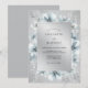 Este design apresenta um fundo prateado luminoso adornado com delicadas flores de anemona em aquarela em tons de azul gelo e cinza suave. Esses elementos florais elegantes criam uma estética sofisticada e gelada, perfeita para um evento sazonal de alta qualidade. Uma paleta de tons frios de platina e azul aço proporciona uma atmosfera tranquila.
