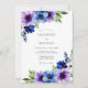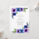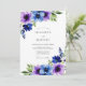 Este design apresenta anêmonas luminosas em aquarela em tons de violeta, cobalto e índigo. Os aglomerados florais vibrantes são complementados por folhagens suaves e verdes, criando uma estética sofisticada e romântica. Ideal para um evento sazonal, os elementos botânicos pictóricos fornecem uma atmosfera refinada e artística.