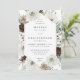 Mande um belo convite de casamento aos seus convidados com os seus belos Convites de Casamento de Pinho e Floral Brancos. Perfeito para Casamentos e Casamentos outono Russos, este convite apresenta flores brancas e naturais pintadas à mão, cones de pínus e folhas de pínus. Traz a sensação da natureza para o seu convite de casamento com um toque de luxo. Impressos em nível profissional, impressoras de alta qualidade, seus convites para casamento estarão no nível de luxo personalizado, mas sem o preço alto. É fácil criar seu próprio convite de casamento, apenas digitar suas informações em nossas modelos. Visite esta página para começar.
