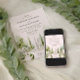 Convite de casamento com belas ilustrações de aquarela de jardins e fundações em conjunto com um roteiro elegante e fontes serif nas quais todas as suas informações personalizadas estão escritas. Você pode encontrar mais produtos correspondentes desta incrível coleção de casamento em nossa loja.