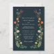 O convite de Casamento do Jardim Elegante apresenta ilustrações coloridas de flor silvestre do estilo 'vintage'. Personalize com suas informações ou clique em "Clique para personalizar mais" para editar estilos de fonte, tamanho e cores.