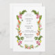 Lindo convite de casamento tropical pintado à mão com aquarela, emoldurado por um delicado arranjo de folhagens tropicais exuberantes e coloridas, flores e beija-flor, dando-lhe uma aparência única e personalizada. Perfeito para qualquer casamento tropical, de verão, de jardim ou de destino