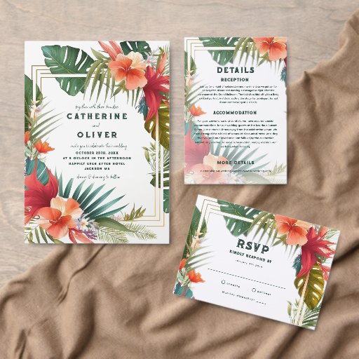 Convide seus convidados em estilo com este elegante convite para casamento tropical, perfeito para casamentos de praia e destino. Apresentando um lixado hibisco de aquarela, folhas de palma e folhagem de Monstera, esta design captura a essência de uma celebração romântica de ilha. A escrita moderna e as fontes ousadas de serif adicionam um toque de sofisticação, enquanto os sotaques geométricos do ouro enquadram seus detalhes de casamento lindamente. Este convite é totalmente personalizável — edite os nomes, a data, o local e todos os outros textos para ajustado do dia especial. Ideal para casamentos de verão, resorts de praia ou eventos temáticos tropicais. Par com cartões RSVP correspondentes, salve as datas e muito mais em nossa Coleção de Casamentos Tropicais.