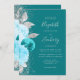 Convite Casamento De Lama De Prata De Turquesa Floral