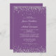 Convite de casamento roxo com brilho prateado com os nomes da noiva e do noivo escritos em uma letra elegante. A cor de fundo deste cartão é personalizável com as ferramentas de design do Zazzle, de modo que, qualquer que seja o tema de cor do seu casamento, você pode fazer seus convites para combinar. Entre em contato comigo para obter ajuda com as personalizações.