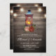 Incêndio aos seus convidados com este convite de casamento rústico, com uma bela lanterna de madeira com rosas vermelhas de safra e luzes de galos num fundo de madeira rústica. Basta adicionar os detalhes do seu evento neste modelo fácil de usar para torná-lo um convite de tipo único.