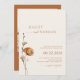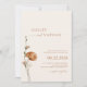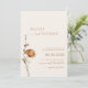 Mínimo de tipografia, script de luz terracotta, convite de casamento com fotos que apresentam elegante design de flor silvestre e código QR com informações mais detalhadas no verso.