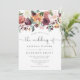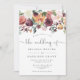 Convites de casamento clássicos de charme de país com uma gota floral de cor d'água de crisântemo, rosas e folhagem botânica. Ideal se você está planejando um casamento nos meses de outono ou inverno. Personalize facilmente este design de convite para casamento moderno e elegante com os seus detalhes de casamento.