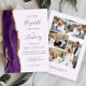 A borda esquerda deste elegante convite de casamento moderno apresenta uma cor d'água roxa, borda agitada, aparada com falso brilho dourado. O texto personalizável combina a escrita manual de cinzas de carvão, as fontes em copperplate e itálico em um fundo de lavanda. Substitua facilmente as cinco imagens de exemplo no verso por suas fotos e adicione um texto breve com informações adicionais (como o URL do seu site).