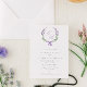 Um belo convite formal para o casamento perfeito para a primavera com uma corante d'água com flores de ferradura com seu elegante monograma cursivo no centro. A coroa é adornada com um arco de coquete de lavanda correspondente.