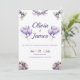 Junte-se a nós para celebrar a união da Olivia e do James com este belo convite de casamento de temas lavandas. Com delicadas disposições florais e tipografia elegante, este convite dá o tom perfeito para uma celebração romântica de casamento. Personalize-o com seus detalhes para torná-lo exclusivamente seu.