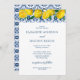 Um belo convite para o casamento de limões com limões e azulejo mediterrânico italiano azul e branco. Personalize-o para o seu chá de panela. Projetado para você pelo Blackberry Boulevard.