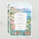 Capturar o charme da brisa do sul da Itália com este convite de casamento da Costa Amalfi. Pintos à mão em tons suaves litorâneos, a design apresenta colores vilas de encosta, mares turquesas e icônicos citrinos, evocando o espírito romântico da Riviera italiana. Enquadrada por flores silvestres e ramos de limão, a trabalho de arte oferece uma combinação perfeita de elegância e talento de destino. Ideal para casamentos em Positano, Ravello, ou em qualquer lugar inspirado pela beleza da costa mediterrânica. Facilmente personalizável para ajustado de sua celebração única.