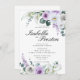 Mão pintada de aquarela convite floral para casamento em lavanda roxa e marfim branco com eucalipto verde. Você pode personalizar o texto, o estilo da fonte, a cor e o tamanho em frente e atrás do convite. Este convite faz parte de um conjunto de casamento completo com papelaria correspondente.