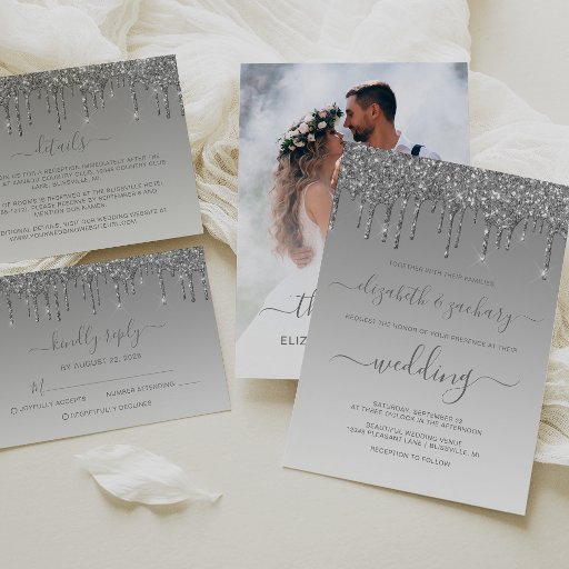 Elegant Silver Glitter Drip Wedding SuiteCriado por Akhates Designs