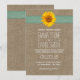 Convites de Casamento Rústicos de Lona de Girassol Country.