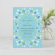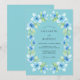 Um design sereno e delicado apresentando uma grinalda graciosa de flores azul céu e folhagem verde suave. Esta obra de arte evoca uma atmosfera tranquila e romântica, perfeita para uma união sofisticada e arejada.