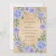 Uma exibição artística de flores de lavanda macia e pervinca, acentuada com folhagens delicadas. Este design evoca uma atmosfera romântica e caprichosa, perfeita para uma celebração sonhada. O arranjo floral inspirado em aquarela emoldura o espaço central com charme gentil.