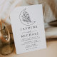 Apresentando o convite de casamento da Elegante Lua Botânica e Estrelas, uma mistura harmoniosa de beleza celestial e elegância natural. Este convite de casamento moderno apresenta uma ilustração delicada da arte da linha preta de uma lua, adornada com estrelas cintilantes e uma luxuosa folhagem botânica, tudo colocado contra um fundo branco primitivo. A design é aprimorada com sutil caligrafia moderna, acrescentando um toque de sofisticação e talento contemporâneo. Perfeito para casais que sonham com um casamento que é eterno e encantador, este convite captura lindamente a magia do seu dia especial.