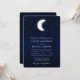 Convite de casamento celestial. Céu azul de água com estrelas e a lua. Bordas feridas.