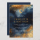 Convite Casamento de Lua Ouro Azul Celestial Abstrato