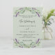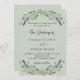 Um fundo verde sábio decorado com flores lavandas e verde de eucalipto. Personalize e seus nomes e detalhes.