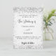 Um fundo branco na frente. Decorado com falso brilho prateado. Personalize e adicione seus nomes e detalhes da festa. Fundo: fundo de prata sujo e brilho.