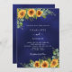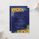 Anuncie a sua alegria com os nossos agradáveis convites para recepções de casamento! Apresentando um fundo azul marinho profundo adornado com girassóis vibrantes e elegantes eucaliptos verde, esses convites exudem charme de eterno e beleza natural. A cor azul é irregular. Personalize com seus nomes e detalhes de eventos para um toque de individualidade. Defina o tom para sua celebração com nossos incríveis convites.