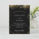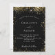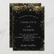 Um convite de casamento moderno e elegante. Fundo preto decorado com brilhos dourados falsos. Personalize e adicione seus nomes e detalhes do casamento. Letras brancas coloridas.
